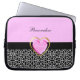 Una manga blanco y negro femenina del ordenador portátil del estampado de girafa 10 pulgadas con un rosa y un corazón impresos lindos del oro que dice a la princesa. Personalice añadiendo su nombre. Perfeccione para el chica adolescente elegante y de moda.