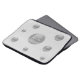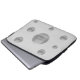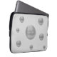 El aspecto metálico de plata moderno se ve en los puntos de la polka en la manga de la computadora gris plateado claro. El texto se puede personalizar.