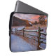 Esta foto ofrece un granero rústico nevado delante de una puesta del sol hermosa en un rancho de Colorado.