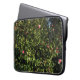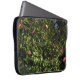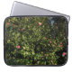 Una manga portátil con una detallada foto réflex digital de alta resolución de un arbusto de camellia rojo a principios de primavera con hojas verdes y flores brillantes.