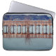 Fotografía de un puente peatonal de madera sobre un cuerpo de agua, con árboles muertos reflejando en la superficie del agua tranquila. Las ramas y piernas del paseo marítimo crean arcos y formas en el agua. En el horizonte, al fondo, hay una franja de tierra cubierta de árboles. Fotografía Copyright ©2018 Kimberly J Tilley.