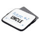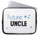 Futuras cajas de sake Uncle keepsake, azulejos, ornamentos, cuadernos, tazas, imanes, tarjetas, botones, cascos, cadenas de claves, y otras prendas de vestir y artículos de regalo de futuros tíos con un texto azul y negro y diseño de estrellas.