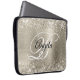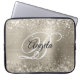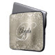 Purpurina de platino platino fino y brillante, con chispas y una imagen de arte digital de Relieve metalizado metalizado con pinceladas falsas en el gran tamaño de la manga de un portátil. Se puede personalizar el lujoso monograma de caligrafía en blanco y negro del centro. Para este estilo decorativo de tipo de letra, puede mover su inicial al centro si es necesario. Todos los elementos metálicos, purpurinoso, brillantes y brillantes de este moderno diseño ondulado se crean con efectos gráficos digitales que imprimen plano como una foto. Un lindo regalo de regreso a la escuela para tu hija.