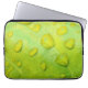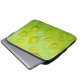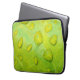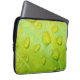 Esta funda de portátil de 13" presenta una fotografía abstracta original de ZoeSPEAK de gotas de lluvia en una hoja. En la foto de cierre, vemos la textura y las venas de la hoja magnificadas en los contornos de las gotas de agua. La brillante hoja verde amarilla refleja el azul y el amarillo del cielo y la luz del sol.