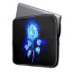 Rosa abstracto en flama azul sobre fondo negro. Rosa de incendios.