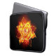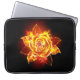 Rosa en llamas del fuego y la llama sobre fondo negro.