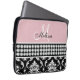 Funda Para Portátil Rosa impreso damasco negro con monograma de los