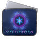 Estrellas fractales rosa y azul de David entrelazadas en un fondo oscuro con texto en hebreo que dice "Ani L'Dodi V'Dodi Li" (Soy mi amado y mi amado es mío)