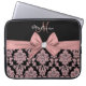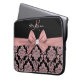 Funda Para Portátil Rosa purpurina de oro Negro Damasco, Bow, Diamante