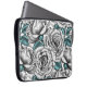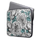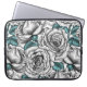 Hermoso patrón digital pintado a mano, rosas blancas con hojas azules.