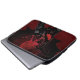 Este poderoso gráfico ilustra a Batman en una posición de acción dinámica, saltando en el fondo de una luna roja y un tormentoso horizonte gótico. El ilustracion está salpicado de tonos rojos y negros, lo que pone de relieve la intensidad y el peligro del momento. Batman es representado en movimiento, luchando con un gancho en la mano, listo para enfrentar los peligros que acechan en la noche. La ciudad que está debajo de él es representada en un detallado estilo de wireframe, sugiriendo su complejidad y la profundidad de los secretos que contiene. Las lluvias caen por toda la escena, lo que aumenta la dramática tensión y la sensación de una batalla en alto riesgo contra el crimen. La obra de arte transmite el implacable impulso de Batman y su papel como héroe oscuro en una ciudad que nunca duerme, capturando su esencia como guardián y protector silencioso de Gotham.