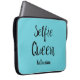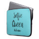 Este funda de manga portátil es genial para alguien que ama hacerse selfies. Las palabras "Selfie Queen" provienen de un fondo azul verde azulado turquesa. Personalizar a personalizar con un nombre o un monograma bajo las palabras "Selfie Queen". Divertido y lindo, este funda hará un gran regalo para usted o para otra persona. Hay otros colores de fondo y productos de coordinación disponibles.