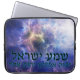 Presenta la frase de apertura de la oración "Shema" en hebreo superpuesta en un fondo multicolor que recuerda a la creación del universo. Shema Yisrael, "Oíd, Israel", son las dos primeras palabras de la oración judía más importante. El primer versículo resume la esencia monoteísta del judaísmo: "Oíd, Israel: el Señor es nuestro Dios, el Señor es uno", que se encuentra en Deuteronomio 6:4. Los judíos observadores consideran que el shema es la parte más importante del servicio de oración en el judaísmo, y su recitación dos veces al día como mitzvah (mandamiento religioso). Es tradicional que los judíos digan el shema como sus últimas palabras, y que los padres enseñen a sus hijos a decirlo antes de ir a dormir por la noche.