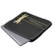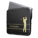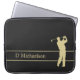 Perfecto para el fanático del golf, esta funda para ordenador portátil cuenta con una silueta dorada en plena oscilación. A la izquierda está tu nombre o monograma enmarcado por líneas de oro finas y a juego. El texto y la imagen se colocan en un fondo negro. Asegúrese de ver los accesorios de golf correspondientes en nuestra tienda.