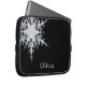 Un gran y dramático copo de nieve decora esta manga de ordenador portátil. El nombre o las iniciales son opcionales.