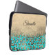 Funda Para Portátil Sparkly Purpurinoso de Leopardo Turquesa