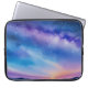 Este encantador diseño acuático capta la serena belleza de una escena de crema cósmica. Una vibrante puesta de sol asoma sobre siluetas de montaña lejanas, pintando el cielo en una fascinante paleta de púrpura, azul y naranjas blandos. El espacio celeste de arriba está adornado con estrellas brillantes y nebulosas giratorias, creando una atmósfera de ensueño y de otro mundo.