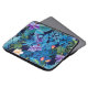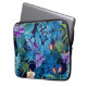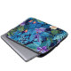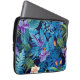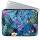 Hermoso diseño floral tropical en tonos azules, violeta y verde en esta funda para ordenador portátil