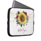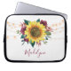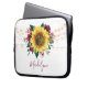 Esta manga de ordenador presenta un moderno diseño floral acuático con un girasol rústico, flores de color burdeos, follaje y luces de cuerda. Personalizarlo con un nombre.