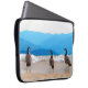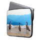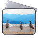 Una representación digital de tres Geeses de Canadá contemplan dirigirse hacia el surf entrante a la orilla del lago Pend Oreille en Sandpoint, ID; las montañas azules están a lo lejos.