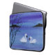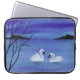 Una pintura acuática de dos bonitos cisnes bajo el crepúsculo de la noche adorna esta bonita manga portátil.