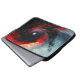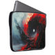 Esta manga portátil tiene un diseño giratorio artístico rojo y negro.