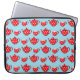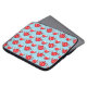 El modelo ilustrado lindo de una tetera y de una taza de té manchadas rojas y blancas fijó en un fondo azul claro.
