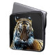 Foto de la cara del tigre con un filtro de fractalius aplicado digitalmente en el mango de la laptop