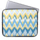 Tribal aztec suave chevron zigzag stripes zig zag diseño náutico diseño de 15" funda de funda de manga de computadora portátil con diseño a rayas geométricas modernas de hipster azul, blanco y amarillo.