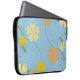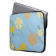 Manga de portátil tropical con fondo azul claro, flores amarillas y naranjas