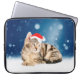 Funda Para Portátil Un gato lindo vestido con Navidades de sombrero ro