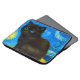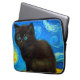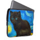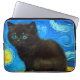 Portátil Sleeve con un gato Van Gogh al estilo de Starry Night! Un gatito negro mullido se perfila sobre una mesa contra un cielo azul nocturno y una luna amarilla. ¡Un regalo perfecto para los amantes del gato y los coleccionistas holandeses de arte!
