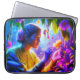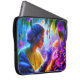 A personalized laptop sleeve of woman botanist, working on her task of examining a yellow flower.