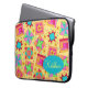 Original quilt art combines favorite quilt blocks plus unique blocks to form a quilt design with vibrant and dynamic colors on a sunny yellow background with a turquoise teal blue oval for personalization. This laptop sleeve case can be personalized with your name, business name or other words of your choice on the turquoise oval. If you don't want to personalize, you can remove the color oval and text. This case is a great way to show off your love of quilting and fabrics and makes a great gift for a quilter or quilt lover. Fully customizable and personalizable. Quilt art is from fabric and quilt designer Phyllis Dobbs and is in a fabric collection from Quilting Treasures.