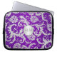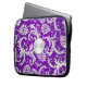 Esta funda de portátil con damasquinera floral brillante en color púrpura y plata tiene un medallón de plata de FAUX con un cuadro de texto para que añada su propio nombre, monograma u otro texto. Si necesita ayuda para personalizar, envíe un correo electrónico a niteowlstudio@gmail.com.