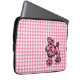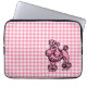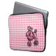 Un patrón de patas traseras rosa decora esta manga de portátil Poodle rosa. El diseño es de arte original.