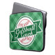 Diseño de estilo retro en verde y lectura, con un círculo con un desplazamiento verde a través de él con el texto 'Entrenador de softbol' dentro, en un estilo retro fresco. Muchas ideas de regalo para tu entrenador de softball!