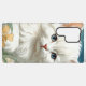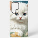Funda de Samsung Galaxy con un gatito al estilo Art Nouveau de Alphonse Mucha! Un gatito blanco y mullido con ojos azules posa con flores amarillas. ¡Un regalo para los amantes del gato y de los coleccionistas Art Nouveau!