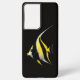 Black 4 Luxe tropical fish phone case design, Moorish Idol artwork edition, realistic marine life illustration, sleek black Galaxy S21 Ultra case, refined nature inspired accessory, premium dark aesthetic finish, artistic smartphone protector concept, exotic fish illustration artwork, gallery quality artistic finish design, radiant yellow and white inspired motif, elegant minimalist art concept style, subtle luxury inspired finish, crisp detailed tropical fish portrait, timeless artistic black background, high quality Samsung protection case, sophisticated ocean lovers tech gift, luminous aquatic contrast inspired artwork, aesthetic balance inspired case edition, collectible Black 4 Luxe design, premium underwater inspired tech accessory.