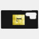 Este Resumen, gráfico, está diseñado con un patrón geométrico, texturizado, panel dorado, sombreado con colores marrones, amarillos y blancos, con un panel de negro, y monograma opcional.