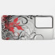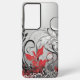 Contemporary Black, Red and White Leaf Design on a Grey background Samsung Galaxy Phone case.