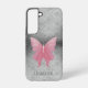 Carga tu equipo electrónico con un Funda de Samsung Galaxy de la mariposa de mariposa con joyas. El diseño funda presenta una mariposa vibrante contra el fondo vintage del damasco y la personalización de su nombre.