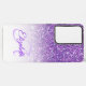 Este diseño oscuro de moda presenta un fondo purpurina morado con nombre personalizado y monograma de letra inicial. Personalice el funda en los campos de texto con un nombre y un valor inicial, quite ambos o haga clic en personalizar para seleccionar un estilo de fuente, tamaño y color que desee.