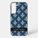 Funda Para Samsung Galaxy Fleur de Lis, Beige on Navy Blue, Royal, Your Name