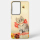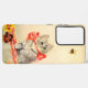 Funda de Samsung Galaxy con la obra de arte Kitten de Meta Plückebaum con cinta roja (b. 1876). Un gatito gris con rayas oscuras está bellamente adornado con una cinta roja. El gatito juega con una abeja. Las flores amarillas decoran el primer plano. ¡Un regalo maravilloso para los amantes del gato y del arte alemán!