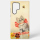 Funda de Samsung Galaxy con la obra de arte Kitten de Meta Plückebaum con cinta roja (b. 1876). Un gatito gris con rayas oscuras está bellamente adornado con una cinta roja. El gatito juega con una abeja. Las flores amarillas decoran el primer plano. ¡Un regalo maravilloso para los amantes del gato y del arte alemán!