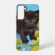 Funda Samsung Galaxy con un gato al estilo Van Gogh con girasoles. Un gatito negro bonito cuidadosamente posa con flores amarillas. ¡Un regalo fabuloso para los amantes del gato y para los coleccionistas holandeses de arte!