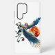 Griffin al estilo de Glorantha RuneQuest volando con sus alas de plumas esparcidas contra una creciente luna roja en el fondo. por martinspixs.
