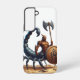 Hombre Escorpión sosteniendo un hacha y cuidando un escudo redondo de madera, parado en el desierto como tierra. al estilo de Glorantha RuneQuest. Por martinspixs.