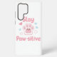 Need a dose of adorable optimism? This "Stay Paw-sitive" graphic is here to help! Featuring a cute pink paw print surrounded by sweet hearts, this charming and funny pun serves as a delightful reminder to look on the bright side. It's a perfect, cheerful message for any dog or cat lover.